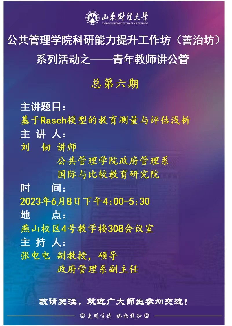 suncitygroup太阳成集团科研能力提升工作坊(善治坊)系列活动之——青年教师讲公管( 总第六期 )预告