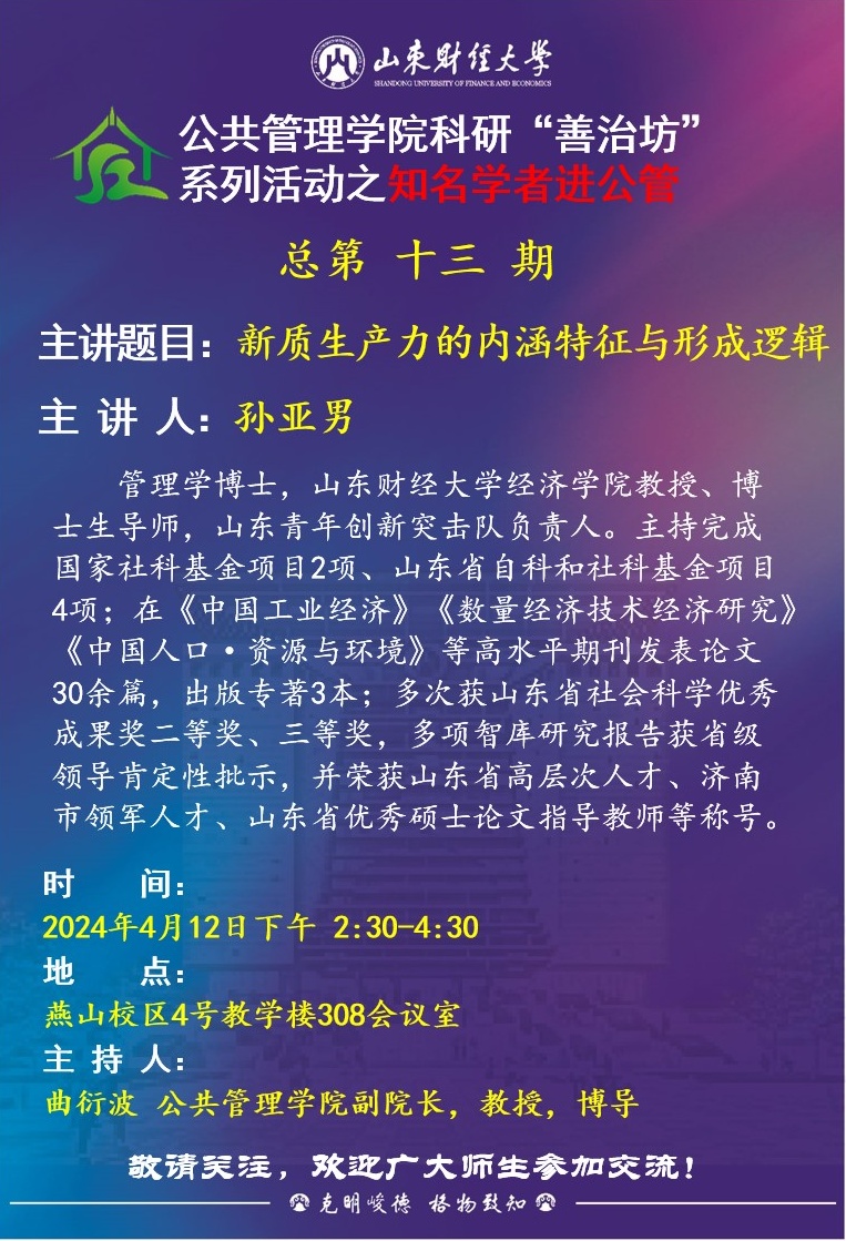 suncitygroup太阳成集团科研“善治坊”系列活动之知名学者进公管总第十三期:新质生产力的内涵特征与形成逻辑