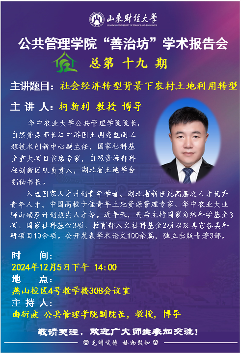 suncitygroup太阳成集团“善治坊”学术报告会总第十九期