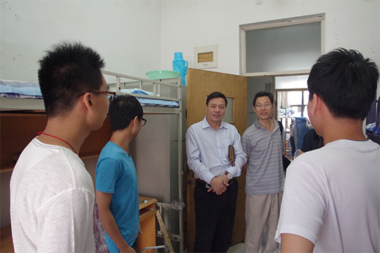 9月11日中午12点,我院14级迎新工作在明水校区篮球如火如荼的展开。9月12日上午9点,我院党委书记郑磊,副院长董西明,党委副书记周炎莅临迎新现场视察、指导迎新工作,向学生会干部了解新生的报到与安排工作,并与休息区的家长亲切交谈,给新生家长答疑解惑,解决他们的后顾之忧。随后,学院领导来到新生宿舍,询问他们对生活环境的感受,记录了同学们提出的疑难和问题,提醒他们注意宿舍安全,鼓励他们尽快熟悉学校环境和宿舍生活。