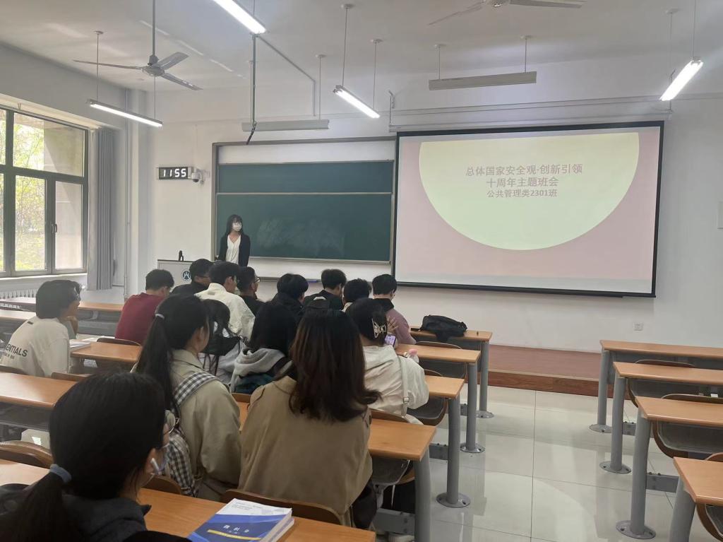 (通讯员 李星玥)2024年是习近平总书记提出总体国家安全观的十周年,在第九个国家安全教育日到来之际,为推进落实国家安全宣传教育工作深入开展,增强广大师生国家安全意识和素养,我院积极响应国家号召,4月11日至4月12日,在圣井校区组织召开“总体国家安全观·创新引领十周年”主题班会,此次班会由2023级各班班团组织,2023级全体同学参加。