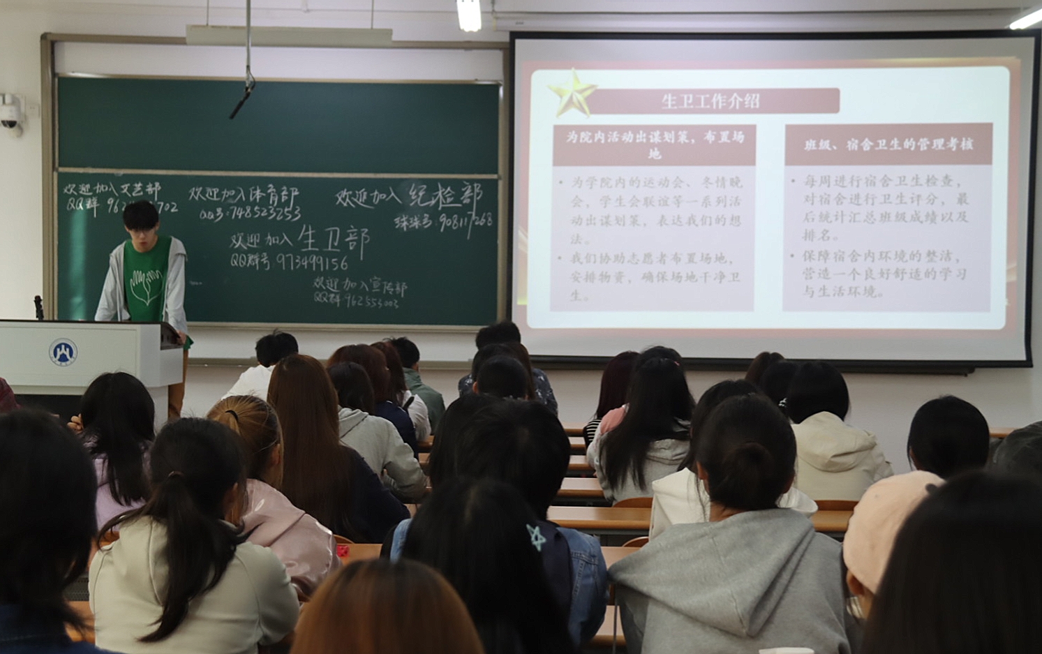 大会现场,学生会各部门副部长精心准备了快闪视频和PPT等资料,向新生们全面展示了本部门的风采。副部长们对本部门基本职责与日常活动进行介绍,从团建活动、职能分工等方面着手,真情实感地讲解了本部门独有的活动与魅力,让新生们对学生会的工作有了更直观的认识。
