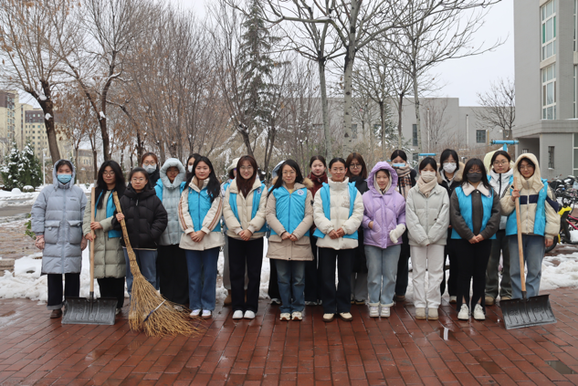 学生们不畏严寒,克服了路面湿滑的困难,早早就抵达了现场,积极投入到积雪清扫工作中。大家手持铁锹、扫把等工具,分工协作,相互配合,对中心道路的积雪进行了全面彻底的清理。通过大家的共同努力,道路很快被清理出来,为师生的出行开辟了一条安全且温馨的道路。